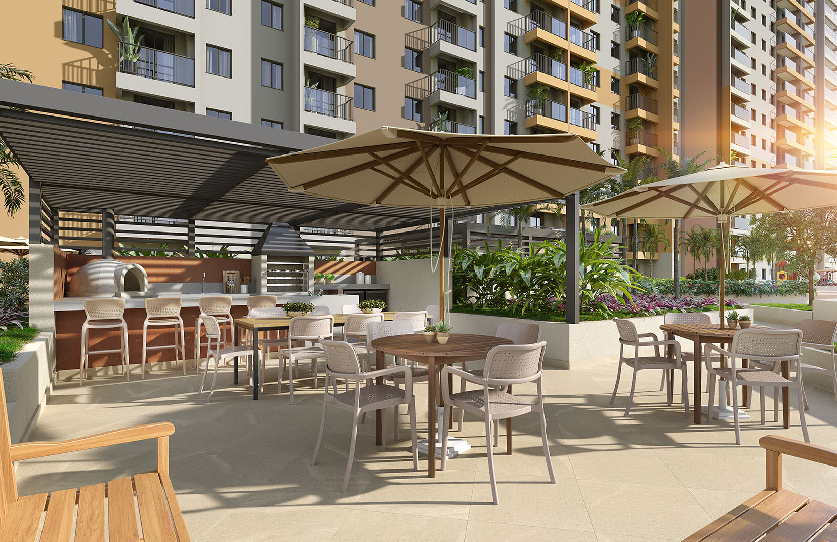Unidades Studios, 1, 2 e 3 Quartos com opção de suíte, varanda e vaga.